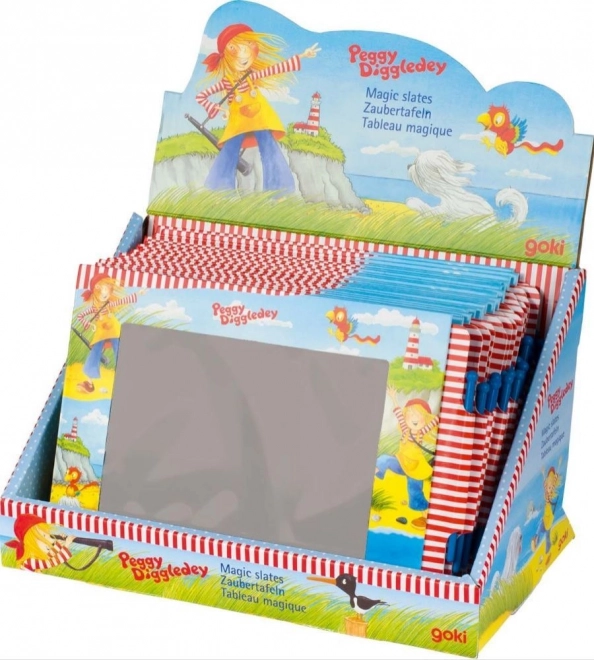 Magnetická tabulka Peggy GOKI umožňuje dětem od 2 let malovat, razítkovat a mazat stále dokola – bez papíru a bez skvrn. Kompaktní velikost se pohodlně vejde do batůžku, takže je skvělým parťákem na cesty, do restaurace i do čekárny.