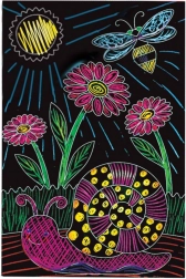 Tato kreativní sada přináší dětem radost z odhalování skrytých barev. Díky speciálnímu dřevěnému „tužkovému“ drápátku mohou malí umělci bezpečně a snadno vytvářet vlastní obrázky s motivy motýlků a květin, které se budou krásně vyjímat v dětském pokoji.