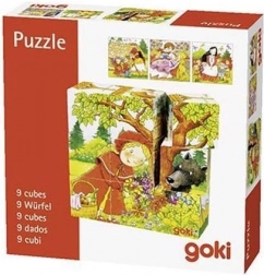 Dětské dřevěné kostky s pohádkami od Goki přinášejí radostné skládání i první vyprávění příběhů. Z 9 kostek poskládáte 6 barevných scén z oblíbených klasik – například Červená karkulka, Sněhurka a sedm trpaslíků, Šípková Růženka, Jeníček a Mařenka či Popelka. Každé otočení kostky odhalí nový kousek obrázku a děti si trénují logiku i trpělivost.