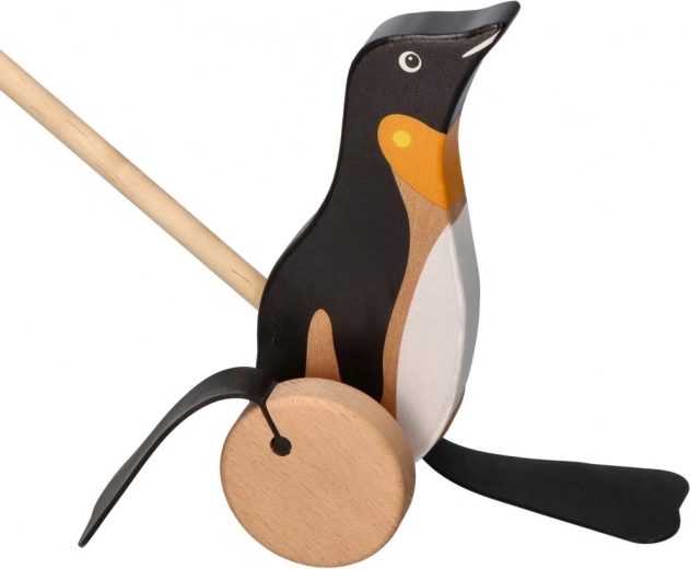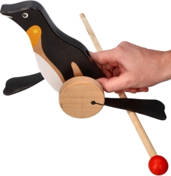 Dřevěná tahací hračka ve tvaru tučňáka přináší radost a rozvíjí děti hravou formou.