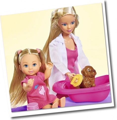 Se sadou Steffi veterinář si děti snadno zahrají na ošetřovnu pro mazlíčky. Panenka Steffi (29 cm) se společně s malou Evi (12 cm) starají o čtyři roztomilá zvířátka a používají k tomu různé doplňky, které dělají hru zábavnou i poučnou.