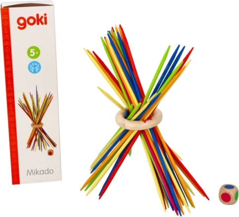 Klasická dovednostní hra MIKÁDO s kroužkem od GOKI potěší malé i velké hráče od 5 let. Tyčinky o délce 18 cm rozvíjejí jemnou motoriku, trpělivost a soustředění a výrobek splňuje požadavky CE.