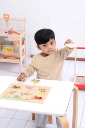 Každý dílek má praktický úchyt, díky kterému děti pohodlně trénují jemnou motoriku, přesnost pohybů a samostatnost při skládání.