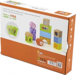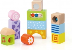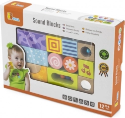 Tato sada dřevěných zvukových kostek přináší dětem první radost ze stavění a objevování zvuků. Každá kostka je navržena tak, aby zaujala barvami, vzory i různými zvukovými prvky (zvoneček, chrastění), které rozvíjejí sluch a koordinaci oko–ruka.