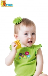 Vybrané kostky obsahují zvonečky a chrastítka – dítě při pohybu objevuje různé tóny a rytmy a přirozeně rozvíjí sluchové vnímání.