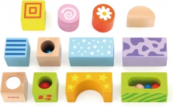 Sada nabízí čtvercové i obdélníkové kostky v pestrých barvách a vzorech. Ideální pro učení barev, třídění a první stavitelské pokusy.