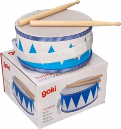 Dětský bubínek s paličkami Goki je ideální volbou pro malé bubeníky. Svým lehkým designem a tlumeným zvukem umožňuje dětem volnost při hře, a tak podporuje jejich sluchové vnímání a rozvoj pohybové koordinace.