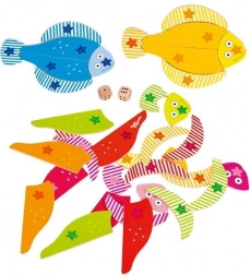 Tato barevná dřevěná hra od značky GOKI je navržena tak, aby nejen zabavila, ale i vzdělávala děti. Skládá se z puzzle ryb, které je nutno složit pomocí hodu kostkou, což činí hru nejen zábavnou, ale i napínavou. Výrobce klade důraz na bezpečnost a zdravotní nezávadnost materiálů, které jsou šetrné k životnímu prostředí.