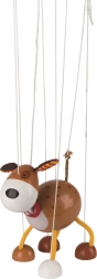 Tato roztomilá loutka ve tvaru pejska je vyrobena ze dřeva a bavlny, což zajišťuje její vysokou kvalitu a životnost. S délkou přibližně 13 cm a s vodícími provázky dosahujícími délky přibližně 40 cm, je ideální pro malé dětské ruce.