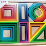 Objevte kreativní svět s dřevěnou stavebnicí Goki Duha s 38 barevnými dílky, které děti využijí k tvorbě 2D i 3D staveb – od věží po malé domečky. Geometrické tvary rozvíjejí prostorovou představivost, jemnou motoriku a podporují kreativitu. Vhodné pro děti od 3 let.