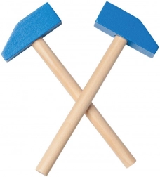 Lehké kladívko s modrou hlavou je uzpůsobené dětem, aby mohly trénovat koordinaci a přesnost při zatloukání hřebíčků.