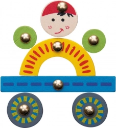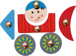 Barevné dřevěné tvary umožní dětem skládat auta, vláčky, stromy i postavy a připevnit je na korkovou tabuli – fantazii se meze nekladou.