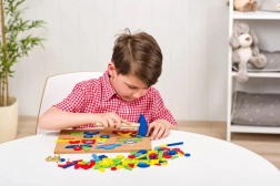 Zatloukání a skládání tvarů rozvíjí jemnou motoriku, trpělivost a koncentraci – ideální aktivita pro předškolní rozvoj.