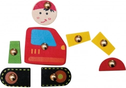 Tato korková přibíječka přináší hodiny tvořivé zábavy. Děti si mohou z barevných dřevěných dílků sestavovat nejrůznější scény s auty, vláčky, loděmi či postavičkami a bezpečně je připevňovat na desku pomocí hřebíčků a dřevěného kladívka. Hra podporuje rozvoj koordinace ruka–oko, logické myšlení a fantazii.
