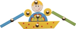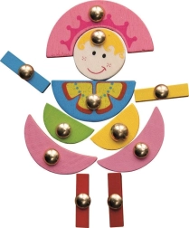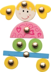 Barevné dřevěné dílky s kovovými úchyty se snadno uchopují a rozvíjejí jemnou motoriku, trénují koordinaci oko–ruka a učení barev i tvarů.