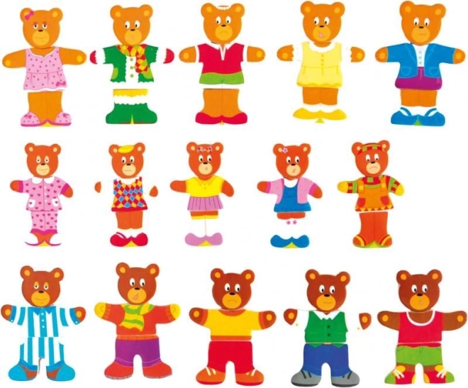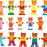 Oblékejte medvídky podle nálady i příležitosti a učte se přitom kombinovat tvary i barvy. Děti snadno mění hlavičky, tělíčka a nožičky, trénují postřeh a vytvářejí veselé příběhy. Praktická dřevěná krabička udrží všechny dílky pohromadě a její víko slouží jako stabilní podložka pro skládání.