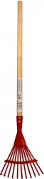 Odolná kovová část pro účinné shrabování a příjemná dřevěná rukojeť pro pohodlný úchop i při delší práci.