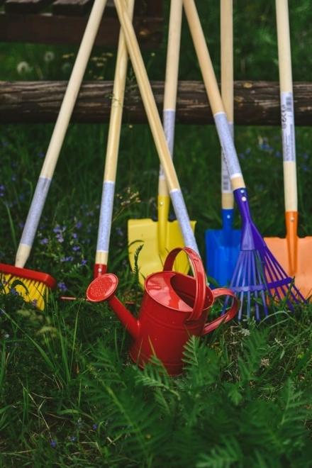 Rozměry a hmotnost přizpůsobené dětem – cca 80 cm délky pro snadné ovládání a první zkušenosti s opravdovým zahradním nářadím.