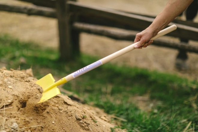 Kulatá kovová čepel zaručuje spolehlivé zarývání a snadné nabírání hlíny i písku. Skvělá volba pro první zahradnické pokusy.