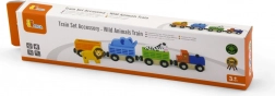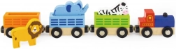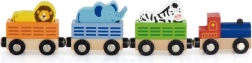 Dřevěný vláček se zvířaty ze ZOO je ideální doplněk k dětským vlakovým setům i samostatná hračka. Lokomotiva a tři pestrobarevné vagónky se lvíčkem, slonem a zebrnou se spojují pomocí magnetů, takže se s nimi snadno manipuluje a děti mohou jednoduše skládat a rozpojovat soupravu podle fantazie.