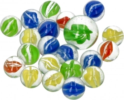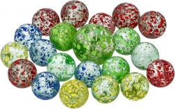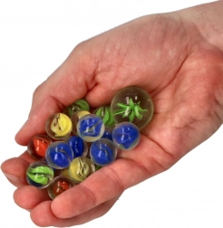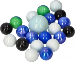 Skleněné kuličky jsou klasickou hračkou, která nikdy nezklame! S touto sadou obdržíte 21 kuliček různých designů. Kuličky mohou mít jednotnou barvu, být průhledné s barevnými vzory uvnitř nebo mít pestrobarevné tečky, které jim dodají jedinečný vzhled. Díky své různorodosti jsou vhodné jak pro děti, tak i jako dekorace.