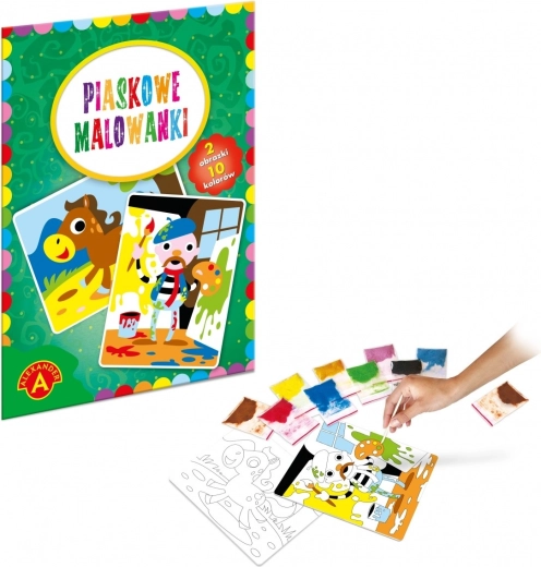 S pískovou sadou „Malíř a koník“ děti odkrývají samolepicí plochy na předtištěných kartách a sypou na ně barevný písek. Snadný postup vede k krásným, originálním výsledkům, které posilují sebedůvěru a chuť tvořit.