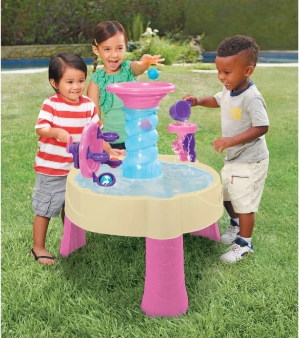 Stolek má dostatečně prostornou hrací plochu pro více dětí a je vyroben z odolného plastu vhodného pro venkovní použití. Jednoduché nalévání, nabírání a pouštění vody podporuje samostatnou hru i kooperaci. Ideální pro zahradu, terasu i letní dny u bazénu.