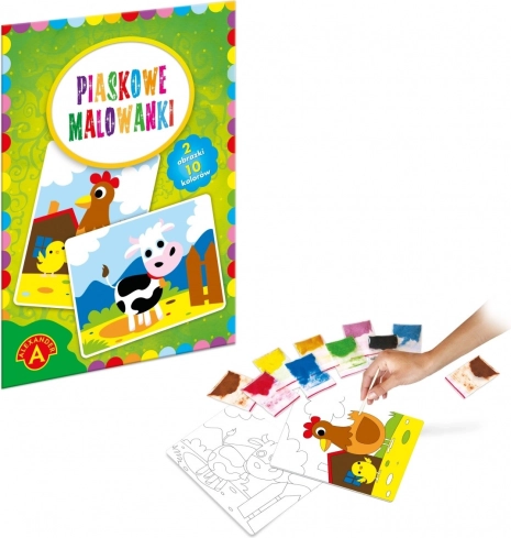 Tato sada pískového malování spojuje umění a hru do jedinečného zážitku. Dítě postupně odkrývá samolepicí plochy obrázku a sype na ně barevný písek – podle předlohy nebo vlastní fantazie. Výsledkem je krásná, výrazně barevná ilustrace, kterou si vytvoří zcela samo.