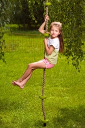 Toto šplhací lano je skvělým doplňkem pro každou zahradu nebo dětský pokoj. Jeho praktické provedení s pěti plastovými stupátky umožňuje dětem rozvíjet fyzickou zdatnost a lezecké dovednosti.
