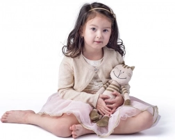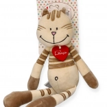Tato hebká plyšová kočička v příjemné béžové barvě s hnědými proužky potěší děti svým přátelským výrazem a dlouhými končetinami, které se skvěle objímají. Díky lehké konstrukci se snadno drží i těm nejmenším ručkám a stane se oblíbeným společníkem na usínání i hraní.