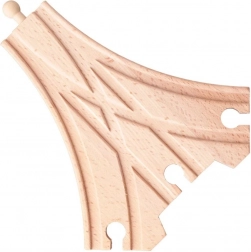 Železniční rozjezd X je ideální díl pro všechny malé stavitele vláčkodrah. Umožňuje křížení tratí a přidává do hry více možností, jak vést vlaky a plánovat jízdy. Díky jednoduchému systému spojů jej snadno připojíte k ostatním částem dřevěné koleje.