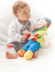 Měkké textilie a veselé barvy podporují smyslové vnímání a dělají z panenky oblíbeného parťáka na hraní.