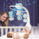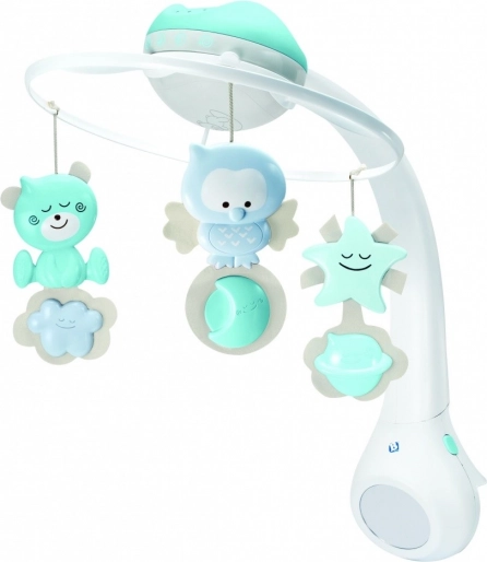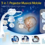 Tento všestranný kolotoč roste s vaším dítětem: od novorozeneckého období jako kolotoč s jemným světlem a hudbou (0–5 měsíců), přes noční lampičku s hudbou na postýlku (6–18 měsíců), až po samostatnou lampičku s hudbou na noční stolek (18+ měsíců). Projektor promítá hvězdičky a vytváří klidnou atmosféru pro snadné usínání.
