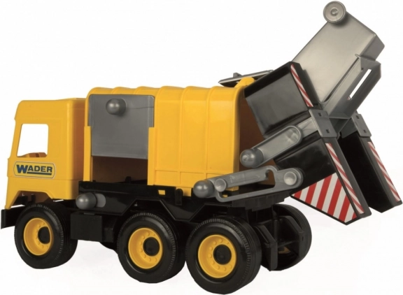 Auto má funkční zadní nakladač, který usnadňuje nakládání a vysypávání „odpadu“ z přiložené popelnice. Svěží žluté provedení s černými detaily a šest kol zajišťují stabilitu a hladký pohyb po různých površích.