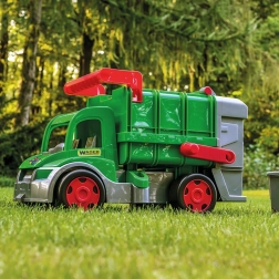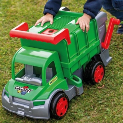 Popelářské auto WADER GIGANT FARMER přináší dětem realistickou hru na úklid města. Díky pohyblivému zvedáku snadno vyprázdní přiložený kontejner, otevíratelná zadní klapka usnadňuje nakládku a vykládku a volně běžící kola zaručují plynulý pohyb. Nosnost až 50 kg dovolí dětem si na autě sednout a držet se za praktické horní madlo, zatímco přední závěs umožní tažení nebo propojení s dalším vozidlem či šňůrou.