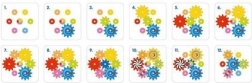 Všechny ozubené kola jsou barevné z obou stran a umožňují volný pohyb a nekonečné variace, což zajišťuje hodiny zábavy plné objevování, když se kola poprvé začnou točit.