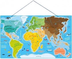 Tato magnetická mapa světa je skvělým nástrojem pro děti, jak hravou formou poznávat země a kontinenty. Spodní vrstvu tvoří zjednodušená politická mapa, kde děti připevňují puzzle dílky. Učí se zeměpisnou polohu a charakteristiky jednotlivých zemí, včetně fauny v těchto oblastech.