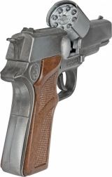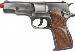 Realistická dětská pistole z kovu z edice Gold Collection pro zábavnou a bezpečnou hru. Kapesní „kapslíková“ pistole střílí až 8 ran, má odolné kovové tělo, pohodlnou rukojeť s dekorem dřeva a výraznou bezpečnostní červenou koncovku. Skvělá pro kostýmy policisty, hry na hrdiny a rozvoj fantazie.