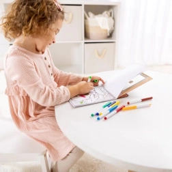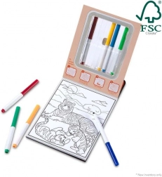 Kompaktní omalovánka s integrovanými držáky na vícebarevné fixy je ideální řešení pro zábavu na cestách i doma.