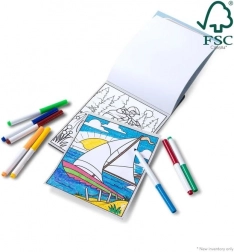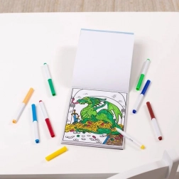 Součástí balení jsou barevné fixy připevněné k bloku, takže můžete malovat kdykoli a kdekoli – ideální na cesty.