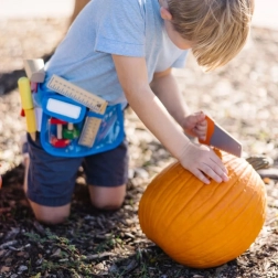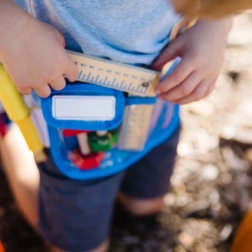 Praktický látkový opasek s kapsami udrží všechny nástroje bezpečně na svém místě a přizpůsobí se dětskému pasu.