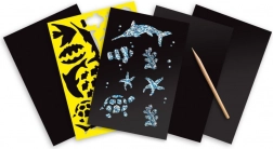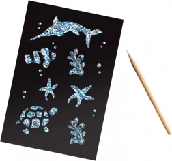 Obsahuje šablonu s mořskými tvory a dřevěný stylus pro tvorbu kreativních vzorů.