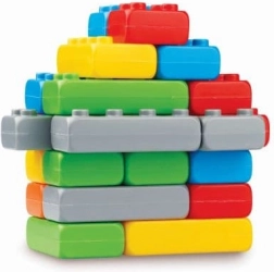 Sada 33 velkých dílů ve třech tvarech umožní dětem budovat domky, věže i stěny. Lehké a snadno spojitelné kostky podporují fantazii a samostatnou hru.