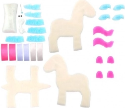 Součástí sady je vše, co potřebujete k tvorbě kouzelného plyšového jednorožce, včetně růžové hřívy, modrých kopyt a hravých stuži. Hotový jednorožec bude skvělým parťákem pro každodenní hraní i dekorativní prvek.