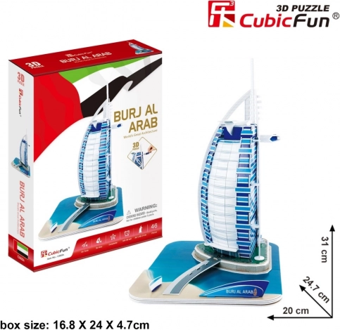 Objevte kouzlo moderní architektury s 3D puzzlem Burdž Al Arab od CubicFun. Díly z cca 3mm silné pěny potažené laminovaným potištěným papírem zajišťují stabilitu, barevnou věrnost a snadné sestavení. Model věrně zachycuje charakteristickou siluetu „plachetnice“ a stane se výrazným doplňkem interiéru.