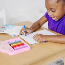 Všechny barvy máte po ruce, voskovky se nekutálí a děti mohou v klidu tvořit na stole nebo v dětském koutku.