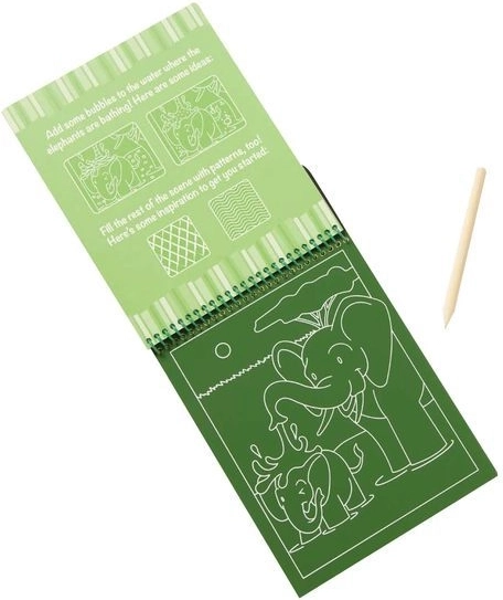 Stírací blok Safari je ideální aktivita pro děti, které milují tvoření. Každá stránka skrývá barevnou scénu, kterou dítě odhalí jemným seškrabáváním horní vrstvy dřevěným stylusem. Díky kompaktním rozměrům je perfektní do auta, na dovolenou i do čekárny.