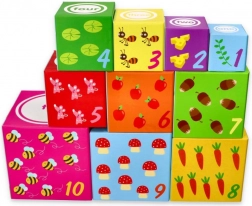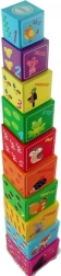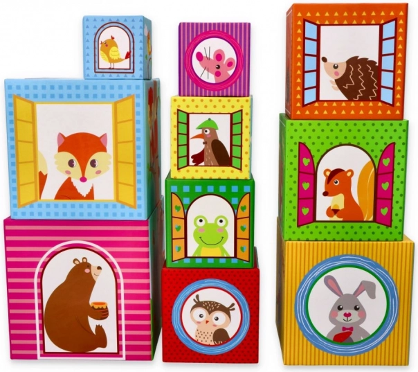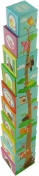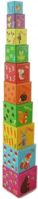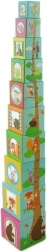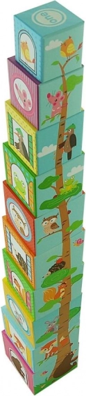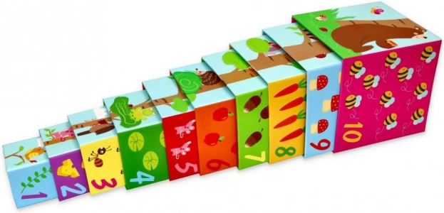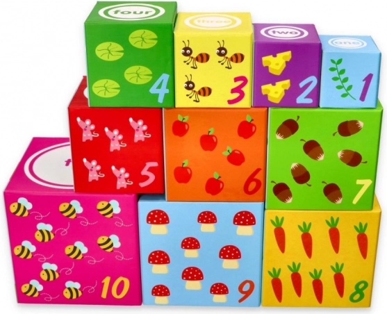Tato sada obsahuje celkem deset kostek vyrobených z kartonového materiálu, které nabízejí možnost skládat věž od největší po nejmenší kostku pro lepší stabilitu a zábavu. Ideální pro děti od 12 měsíců, splňující všechny bezpečnostní normy včetně deklarace shody CE.