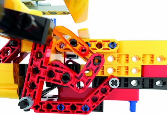 Barevné plastové komponenty s pevným spojením umožňují opakované skládání, rozvíjejí jemnou motoriku a technické myšlení.