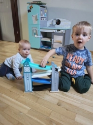 Tato hračka je vhodná pro děti od 18 měsíců a je navržena tak, aby splňovala všechny bezpečnostní standardy. Díky důrazné detailní práci, jako jsou malovaná okna a design připomínající skutečné městské budovy, hračka přitahuje pozornost a povzbuzuje k opakované hře.